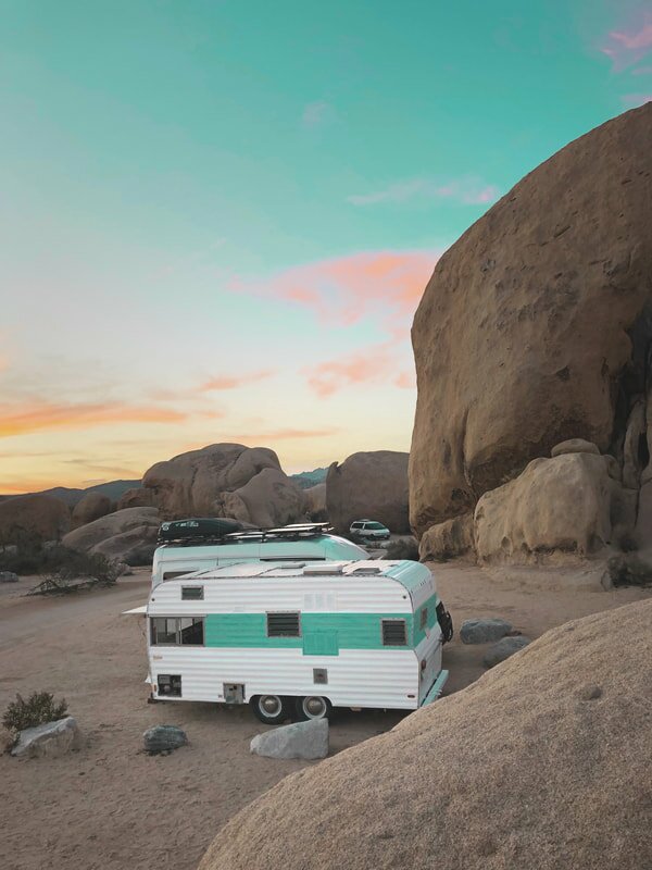 We have a new project on our hands. During our time in Joshua Tree, we came upon the newest addition of our crew, Esther the camper! We had been toying with the idea of a new trailer to use as a lounge/school/guest house. This 1969 Excel camper is a tiny bit bigger than our original ideas for a sweet little pull behind, but she quickly had us in love.